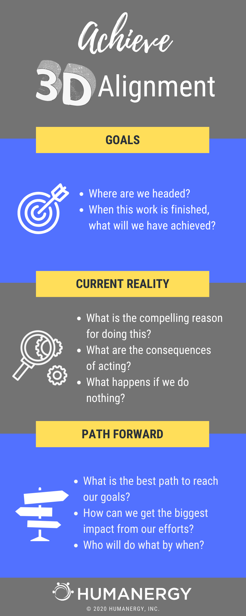 Alignment is three dimensional, a three-legged stool – goals, current reality and path forward. We have to be aligned on all three and keep that common understanding over time.